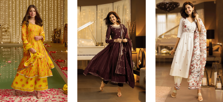 Aurelia’s festive collection offers a vibrant array of ethnic ensembles that celebrate femininity and cultural heritage. From embroidered kurtas to elegant salwar suits, this collection is truly a girl’s best friend this season.