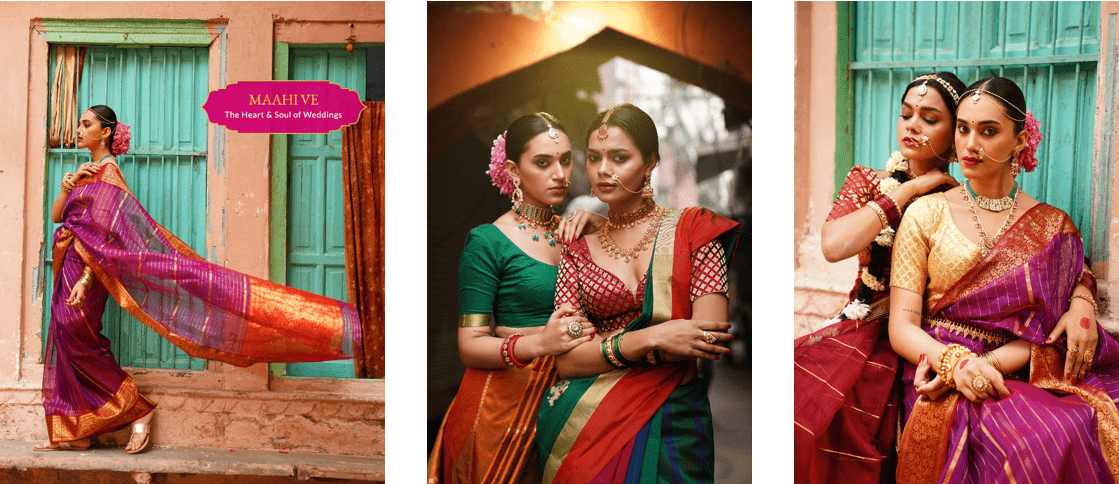 Jaypore’s wedding collection, Maahi Ve, will undoubtedly find its way to every bride’s heart. The collection features exquisite, heritage-crafted sarees perfect for every role – whether you’re the bride, bridesmaid, or part of the wedding entourage.