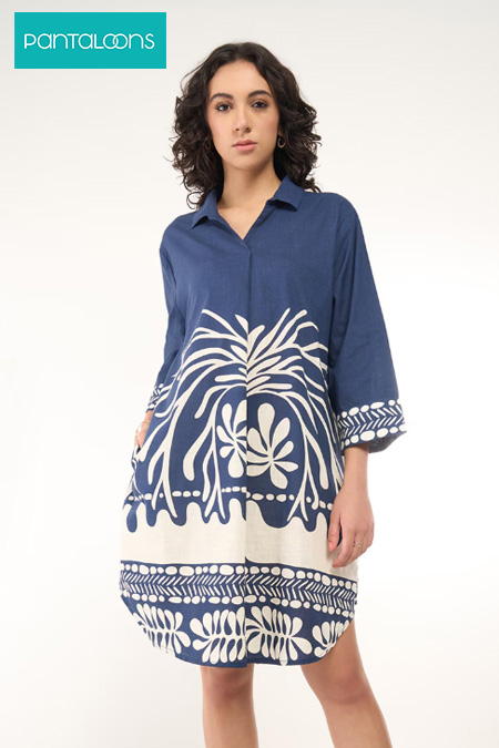 Men can elevate their office look by layering a sharp black blazer from Pantaloons over a subtle, team-colored knit or a sleek navy shirt that nods to the ‘Men in Blue’. Women can wear this blue printed dress from Pantaloons accessorized with a pair of heels and a statement necklace for the day. Transition it to an evening party look with a pair of sneakers and a team India cap. This approach allows you to maintain a corporate edge while being perfectly dressed for a screening party. These pieces ensure you remain the best-dressed person in the room, regardless of the score.